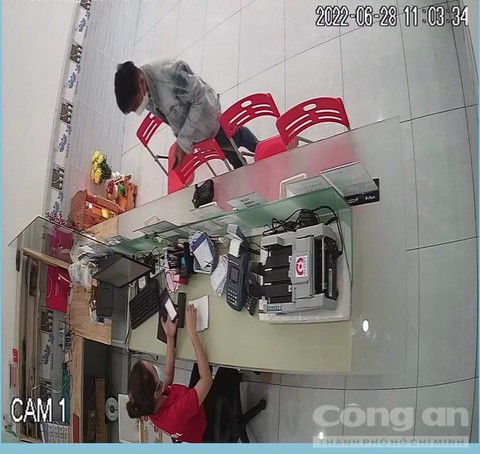 Lúc này đối tượng liên tục nói chuyện điện thoại với vẻ gấp gáp để nữ nhân viên mất cảnh giác.