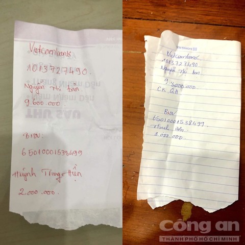 Theo đó, khoảng 20 giờ 40 phút, một thanh niên tới đại lý vé số ở ấp Phú Trung, phường Phú Chánh, thị xã Tân Uyên rồi để một bao màu đỏ giống đựng tiền lên quầy, thanh niên này đưa một tờ giấy có ghi số tài khoản, tên người nhận Nguyễn Thị Bản và yêu cầu nữ nhân viên chuyển gấp vào số tài khoản này 9.800.000 đồng.