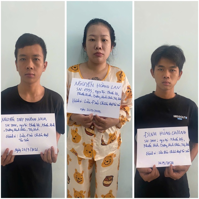 Ngày 26-10, Công an TP Thủ Đức, TP HCM đã ra quyết định khởi tố vụ án, khởi tố bị can, tạm giam Nguyễn Hồng Lan (29 tuổi), Nguyễn Duy Phương Nam (23 tuổi) và Đinh Hùng Chương (24 tuổi) - cùng quê Tây Ninh - để điều tra về hành vi lừa đảo chiếm đoạt tài sản.