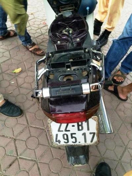 Hồi 14h30 chiều 21-7, tổ công tác Y6/141 làm nhiệm vụ tại ngã tư Trung Kính - Trần Thái Tông (quận Cầu Giấy, Hà Nội) phát hiện hai người đàn ông đi xe máy BKS: 22B1 - 495.17 không đội mũ bảo hiểm.