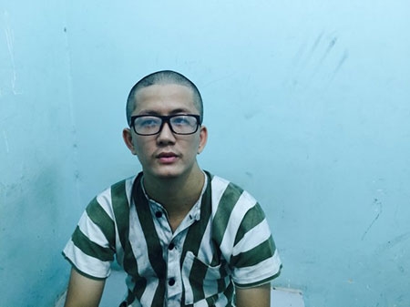 Nghi can Hoàng Xuân Sang tại công an Q.Tân Bình - Ảnh: Mỹ Thương |