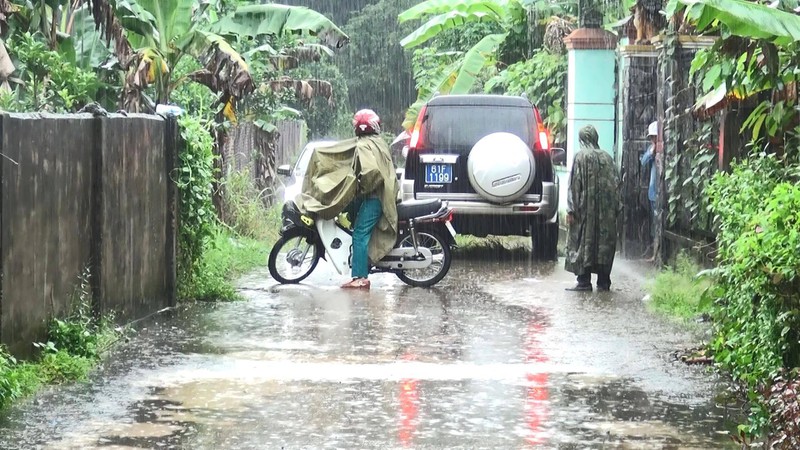 Đến 10 giờ 40, trời đang mưa rất to nhưng nhiều người dân vẫn hiếu kỳ tập trung theo dõi quá trình thực nghiệm hiện trường từ xa