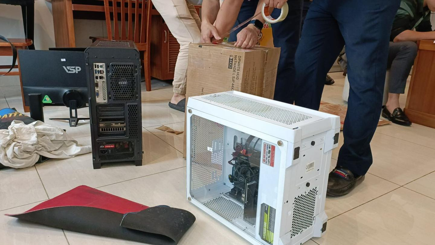 Khám xét khẩn cấp nơi ở của các đối tượng tại các căn hộ chung cư, Ban chuyên án đã thu giữ 28 bộ máy vi tính, 31 thiết bị phát sóng Internet, 43 điện thoại di động các loại, 18 thẻ ngân hàng, 61 thẻ sim điện thoại và nhiều đồ vật, tài liệu có liên quan đến vụ án.