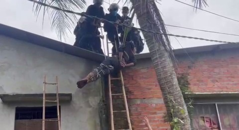 Sau khi tiếp cận được Thái, lực lượng Công an đã khống chế bắt giữ và đưa xuống đất an toàn.