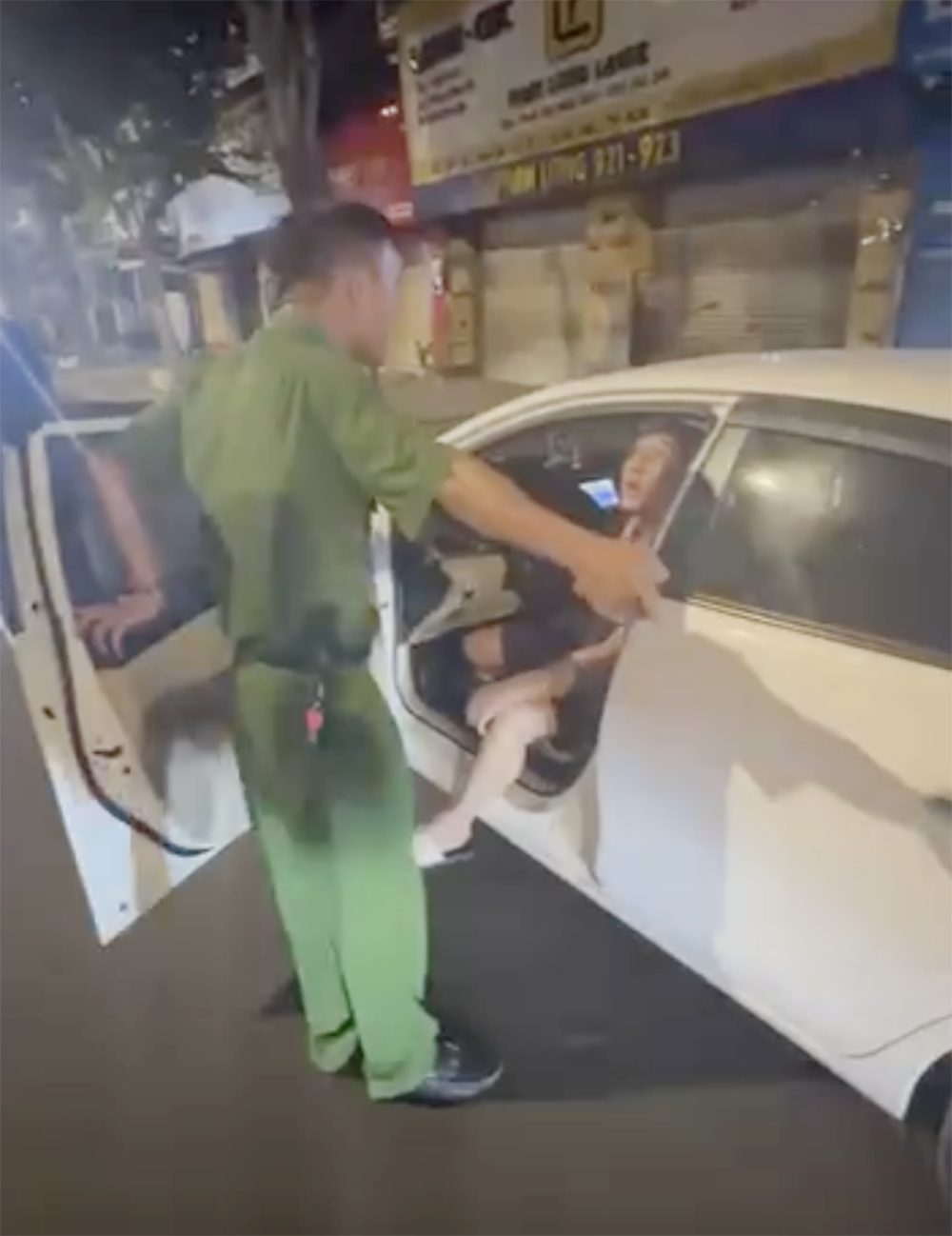 Tài xế sau đó quay lại ngồi trên ô tô. Cán bộ công an phường tiếp cận ở bên vị trí ghế lái, yêu cầu tài xế xuống xe. Bất ngờ, tài xế đẩy cán bộ công an ra, đóng sập cửa và phóng xe đi.