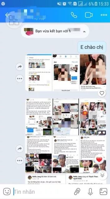 Theo chị Trang, không chỉ đăng hình ảnh của chị và ngay cả ảnh của chồng chị cũng bị đem ra chỉnh sửa cắt ghép. Những tài khoản này còn gửi cả những hình ảnh đồi trụy trên cho người thân, bạn bè của chị Trang.