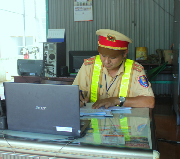 Tổ công tác gồm 4 chiến sĩ, Đại úy Thủy là tổ trưởng, triển khai anh em tuần tra kiểm soát dọc trên tuyến, dừng toàn bộ xe khách để kiểm tra.