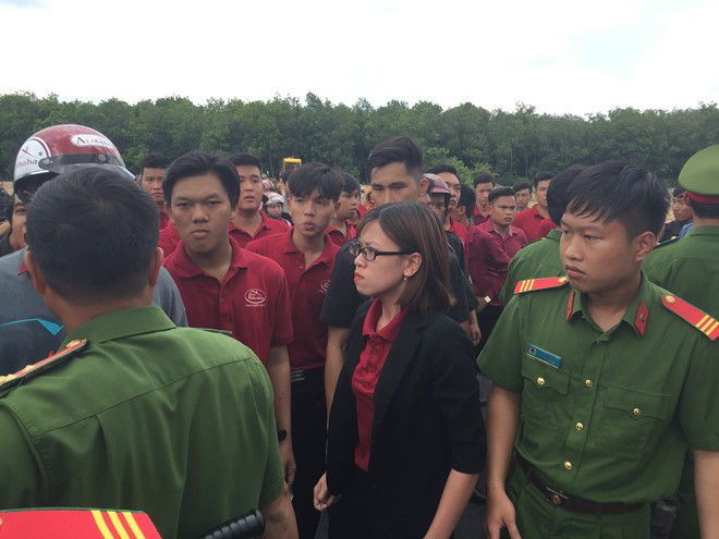 Theo nguồn tin trên báo Một thế giới, khi lực lượng chức năng đang làm nhiệm vụ, hơn 100 người mặc áo ghi Tập đoàn Địa ốc Alibaba đã đến bao vây và ngăn cản. Những người này la hét, yêu cầu chính quyền địa phương, lực lượng công an ra khỏi khu đất. Trong số đó, đối tượng Nguyễn Huỳnh Tú Trinh liên tục lớn tiếng chỉ đạo các nam nhân viên và nhóm người mặc áo ghi chữ An ninh Alibaba đập xe múc và xe máy. Ai dùng điện thoại ghi hình cũng bị Trinh chỉ đạo người đến lấy điện thoại.