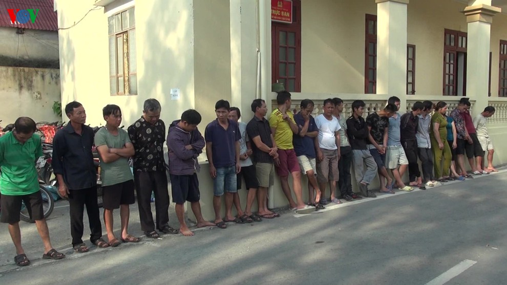 Đồng thời thu giữ 51 con chó, 10 bộ kích điện, 2 súng bắn điện, 8 chai bột ớt, đáng lưu ý là thu giữ nhiều dao, kiếm các loại, 2 bình xịt hơi cay, hàng chục dây thòng lọng và kìm bắt chó, 50 triệu đồng tiền mặt cùng nhiều tang vật, tài liệu có liên quan.
