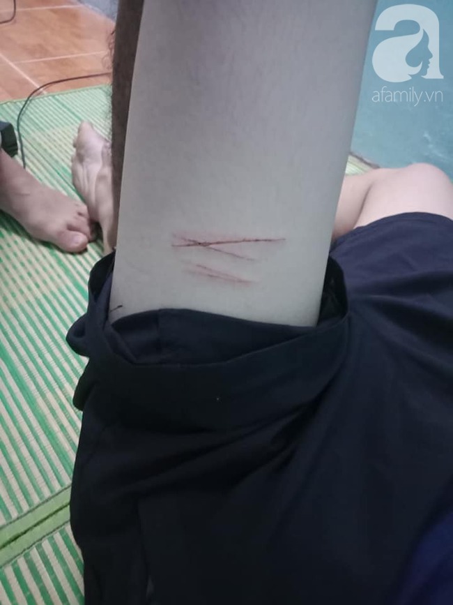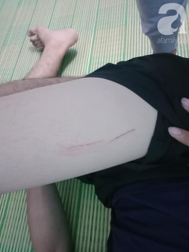"Chiều nay K. sẽ đi bệnh viện khám và xét nghiệm phơi nhiễm HIV vì tụi nó rạch bằng dao lam khiến đùi cậu ấy bị rách nhiều lắm", bạn cùng phòng nạn nhân cho biết.