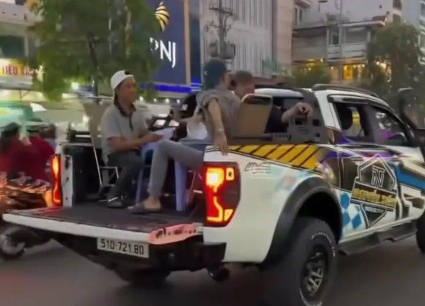 Ngày 19/3, mạng xã hội lan truyền chóng mặt đoạn video ghi lại cảnh một nhóm người thản nhiên bày bàn ghế, ăn uống ngay trên thùng xe bán tải khi phương tiện này vẫn đang lưu thông hối hả giữa dòng người đông đúc.