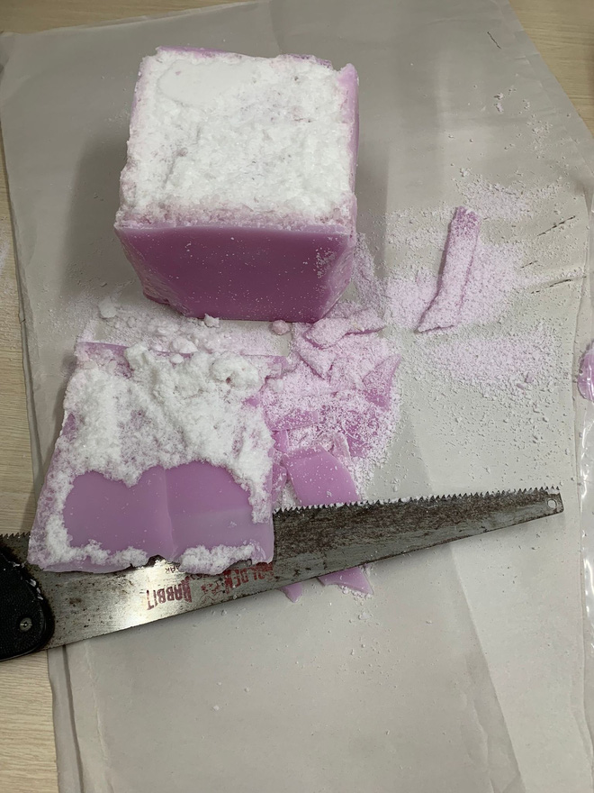 Tuy nhiên, bằng biện pháp nghiệp vụ, lực lượng chức năng đã kiểm tra thực tế và thu giữ gần 5kg ma túy (4.934 gram) là Amphetamine được ngụy trang tinh vi bằng cách đúc giữa các khối sáp thơm, để lẫn cùng với quần áo, đồ chơi trẻ em.