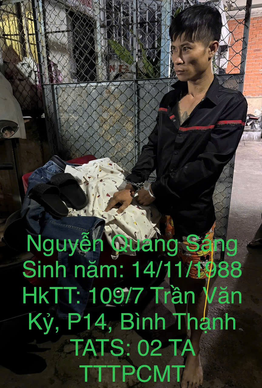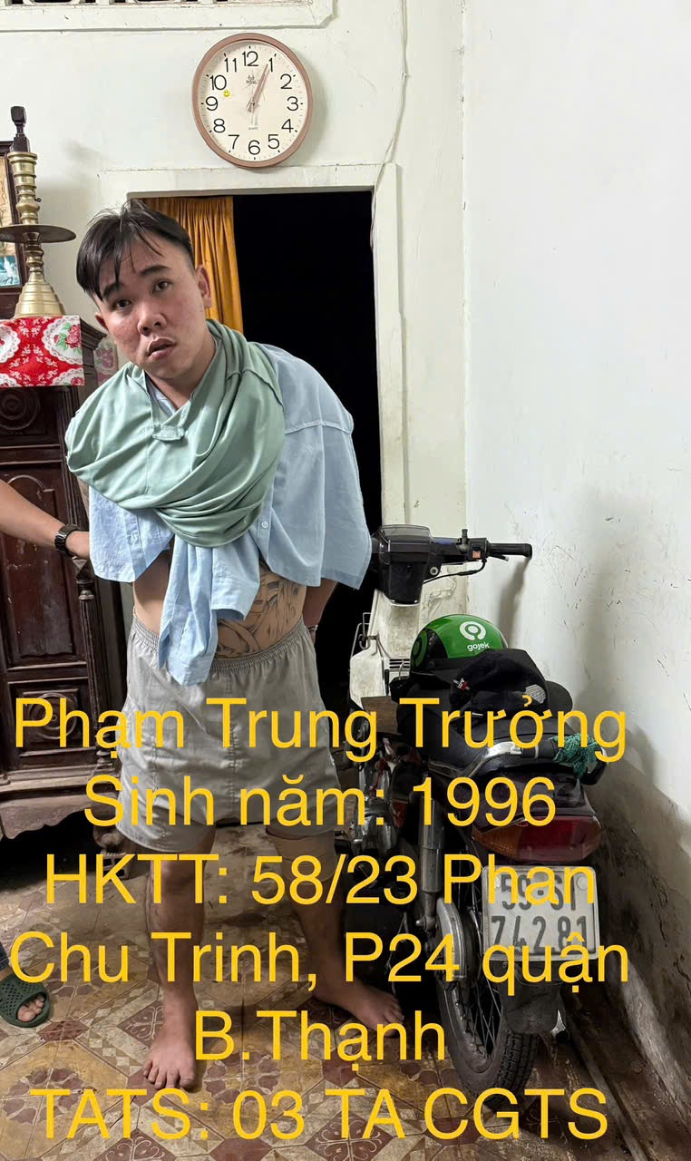 Sau khi nhận được tin báo, Đội 2 - Phòng Cảnh sát hình sự phối hợp với Công an quận Phú Nhuận đã khẩn trương truy xét đối tượng. Đến 0 giờ 30 ngày 24/12, lực lượng công an đã bắt được 2 đối tượng gây án là Phạm Trung Trưởng (SN 1996; HKTT đường Phan Chu Trinh, Phường 24, quận Bình Thạnh; chỗ ở: Phường 2, quận Tân Bình) và Nguyễn Quang Sáng (SN 1988; HKTT Phường 14, quận Tân Bình). Cả 2 đều đã từng có nhiều tiền án, tiền sự.