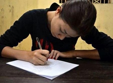 Trang Trần viết bản kiểm điểm tại cơ quan công an |