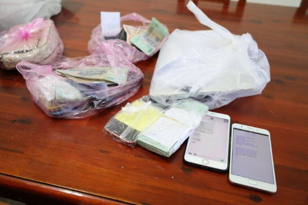 Công an tiến hành thu giữ tang vật tại 9 điểm trên gồm: 2 xe ô tô, 25 điện thoại di động, 1 đầu thu camera, 1 màn hình vi tính và trên 300 triệu đồng..