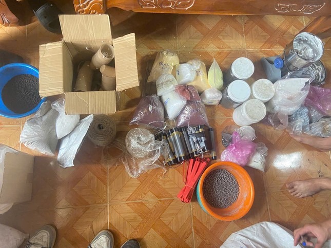 Ngoài ra, lực lượng chức năng còn phát hiện nhiều ống thuốc đã được trộn sẵn kèm dây cháy chậm, hàng nghìn vỏ cầu giấy, ly giấy chuyên dụng để chế tạo pháo nổ và các thiết bị hỗ trợ việc chia nhỏ, pha trộn hóa chất.