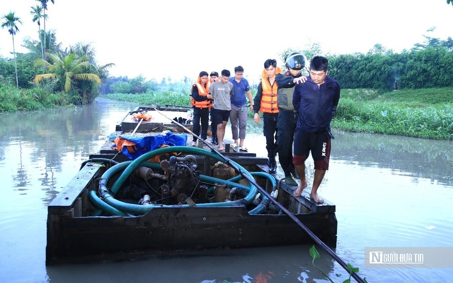 Tại hiện trường, lực lượng chức năng thu giữ nhiều công cụ, phương tiện dùng để thực hiện hành vi phạm pháp, gồm: 3 ghe gỗ chở cát, 1 máy xúc, 1 máy bơm công suất lớn, cùng nhiều sổ sách ghi chép hoạt động mua bán và gần 100 m³ cát chưa kịp tiêu thụ. Tất cả tang vật đã được niêm phong để phục vụ công tác điều tra.