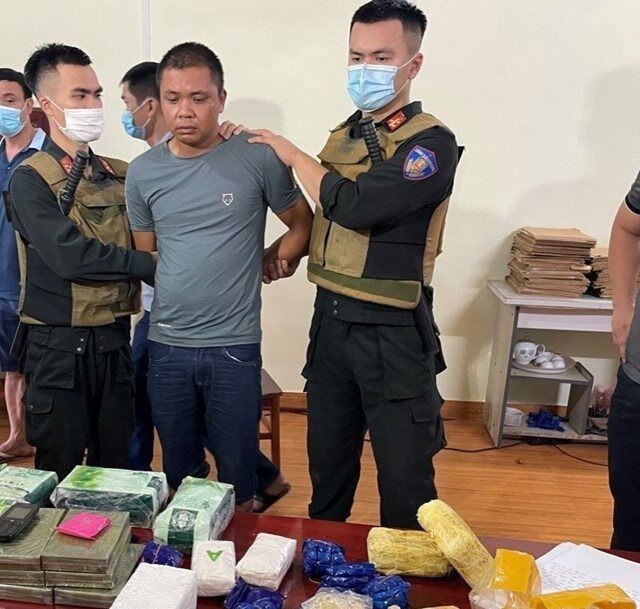 Trước đó, rạng sáng 28/9, lực lượng chức năng đã bắt quả tang Hà Văn Thái (SN 1990, trú tại xã Thái Thịnh, huyện Thái Thụy, tỉnh Thái Bình) đang vận chuyển trái phép 6 bánh heroin, 7kg ketamin cùng 12.000 viên hồng phiến.