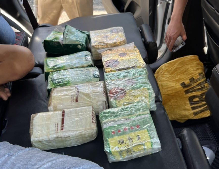 Tại hiện trường, lực lượng chức năng phát hiện dưới hàng ghế ngồi phía sau có một bao tải đựng 9 gói ni lông dạng bao trà với trọng lượng khoảng 9kg, bộ dụng cụ sử dụng ma túy đá.