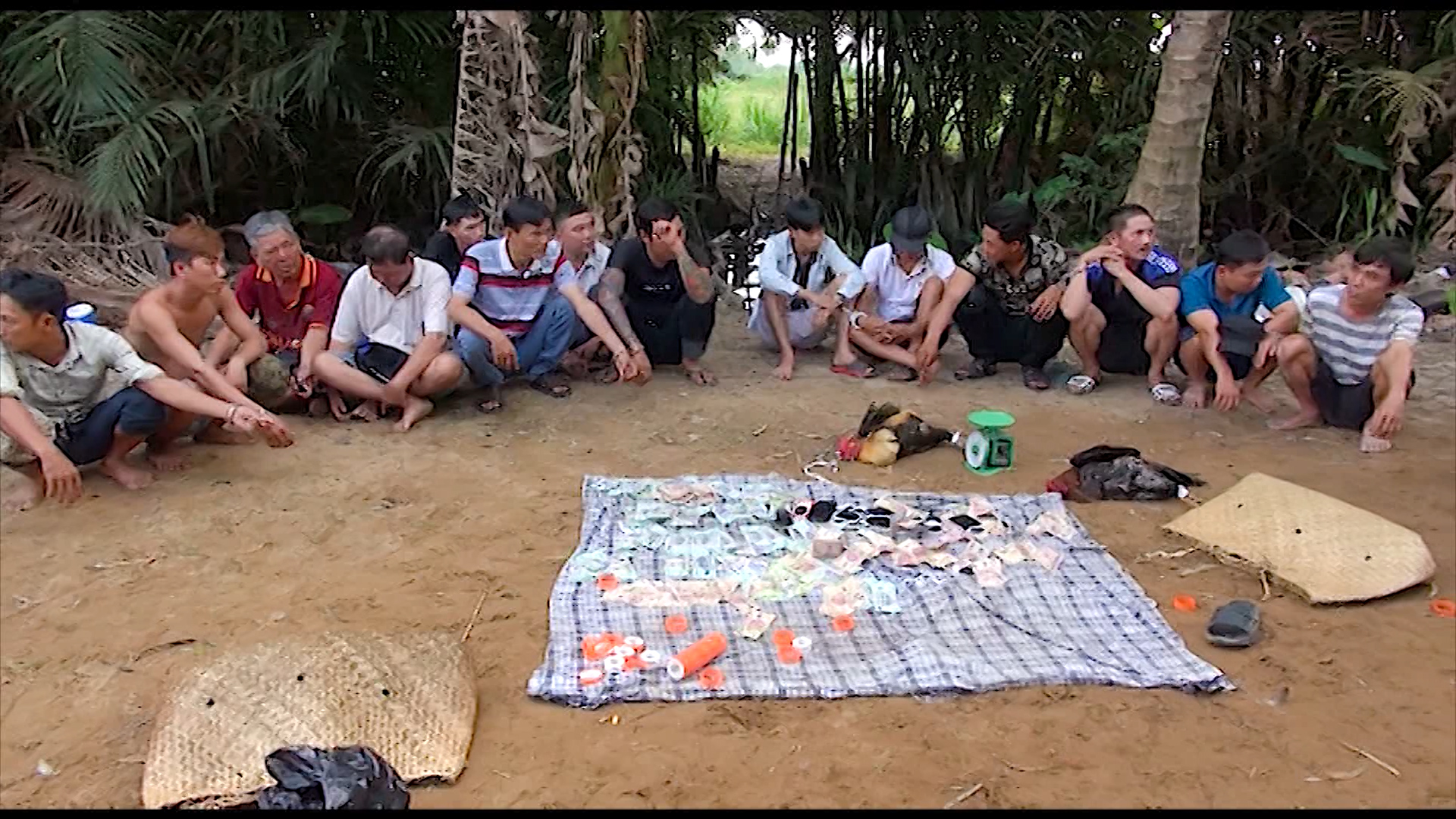 Theo thông tin ban đầu, khoảng 14h30 ngày 28/12, Phòng Cảnh sát quản lý hành chính về trật tự xã hội Công an tỉnh Vĩnh Long phối hợp với Công an xã Ngãi Tứ, huyện Tam Bình, tỉnh Vĩnh Long bắt quả tang 15 đối tượng đang tham gia đá gà và lắc tài xỉu ăn thua bằng tiền trong khu đất trống tại xã Ngãi Tứ.