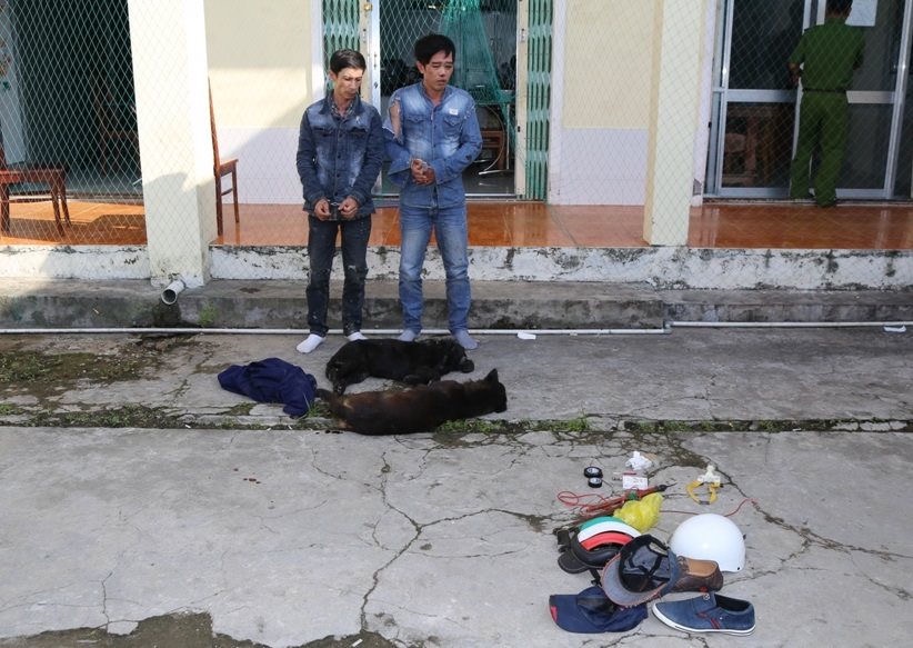 Tại hiện trường, lực lượng Công an đã tạm giữ xe mô tô, 02 con chó có trọng lượng gần 30kg, 01 súng bắn điện, 01 nạn thun, 01 bịch đạn bi và một số tang vật khác có liên quan.