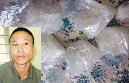Vũ Ngọc Thắng cùng tang vật 7 kg ma túy đá. |