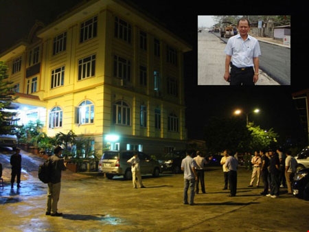 Lực lượng cảnh sát phong tỏa Công ty TNHH Đại An vào đêm 13.8.2014; Trùm xã hội đen Minh “Sâm” (ảnh nhỏ) - Ảnh: Hoàng Anh |
