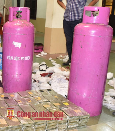 Được biết, các đối tượng sử dụng các bình gas công nghiệp có chiều cao khoảng 1,2m, đường kính 30cm, bên trong những bánh ma túy được xếp chồng lên nhau và lèn chặt, mỗi hàng xếp được khoảng 25 bánh heroin.