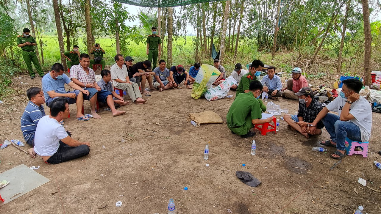 Sáng 12-2 (mùng 1 Tết), Cơ quan CSĐT Công an huyện Tân Hiệp (tỉnh Kiên Giang) đang tạm giữ hình sự hàng chục đối tượng để điều tra về hành vi đánh bạc và tổ chức đánh bạc tại trường gà.