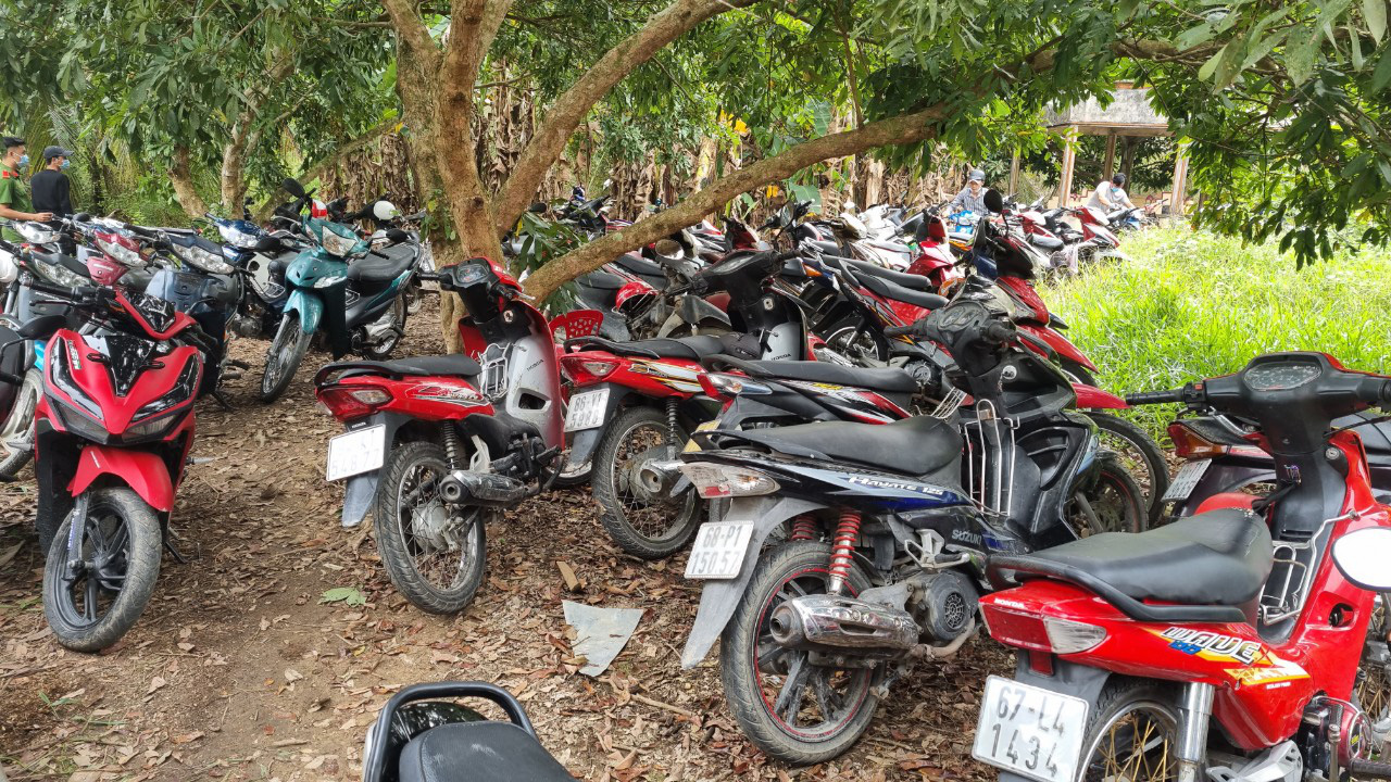 Tại hiện trường, lực lượng Công an huyện Tân Hiệp đã tạm giữ 21 đối tượng, gần 80 chiếc xe máy, 18 con gà, 1 cân đồng hồ, số tiền trên 100 triệu đồng và nhiều tang vật khác phục vụ cho việc đánh bạc.
