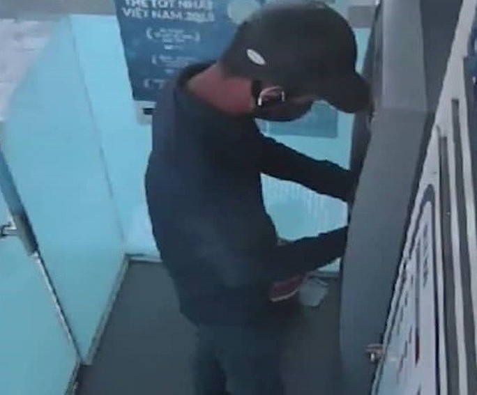 Theo camera trích xuất của ngân hàng, chỉ trong thời gian khoảng 1 phút, 1 đối tượng đội mũ lưỡi trai, bịt mặt đã lắp đặt thành công các thiết sao chụp thông tin trên cây ATM.