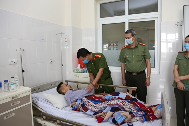 Ngày 3/9, Thượng tá Bùi Quang Bình, Phó Giám đốc Công an tỉnh Quảng Ninh cùng đại diện lãnh đạo một số đơn vị nghiệp vụ đã đến thăm hỏi, động viên Trung úy Trần Quang, cán bộ Phòng CSĐT tội phạm về ma túy bị thương khi truy bắt tội phạm.