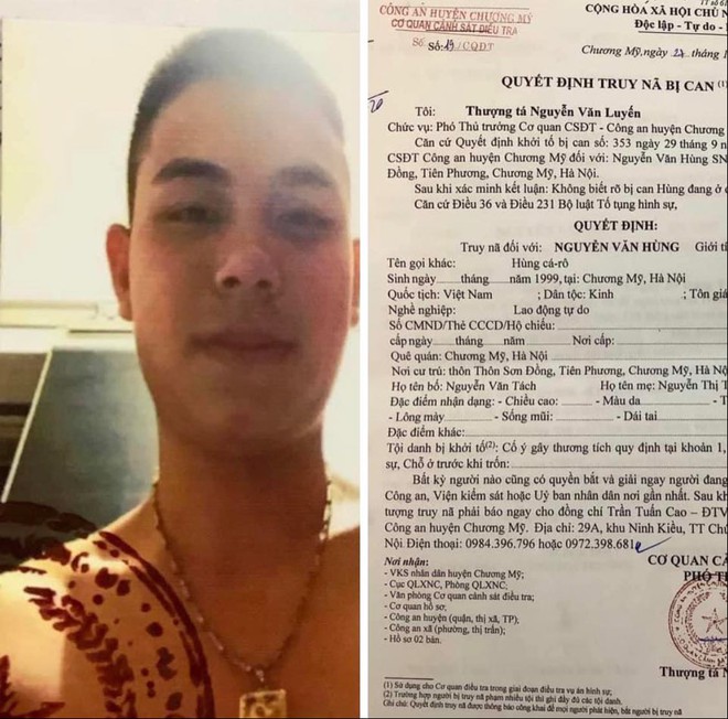 Căn cứ vào hồ sơ tài liệu, ngày 29-9, Cơ quan Cảnh sát điều tra Công an huyện Chương Mỹ đã ra quyết định khởi tố bị can đối với Nguyễn Văn Hùng về tội Cố ý gây thương tích. Đối tượng đã bỏ trốn khỏi nơi cư trú. Cơ quan Cảnh sát điều tra Công an huyện Chương Mỹ đã ra Quyết định truy nã bị can đối với Nguyễn Văn Hùng.