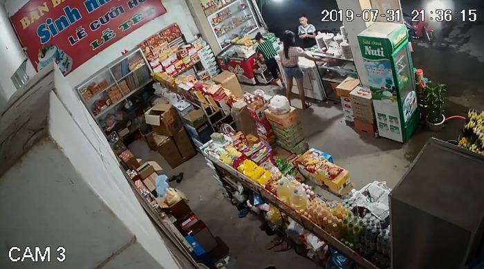 Vụ việc được cho là xảy ra tại huyện Thanh Chương, tỉnh Nghệ An vào tối ngày 31-7. Hình ảnh trong video cho thấy, vào khoảng 21h20' cùng ngày, đôi nam nữ đi xe máy dừng trước tiệm tạp hóa.