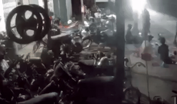Hình ảnh trích xuất camera an ninh của một hộ dân gần nơi xảy ra vụ việc cho thấy, sau khi bị trúng bom xăng, 2 người bị lửa cháy bén vào quần áo, một số người khác nhanh chân chạy thoát.