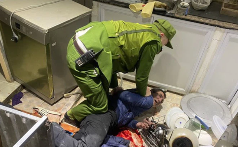 Do cửa xếp nhà anh Dũng khóa bên trong nên lực lượng công an phải trèo qua cửa sổ tầng 1, xông vào khống chế được Bình cùng hung khí, đưa về trụ sở công an phường Chương Dương để giải quyết.