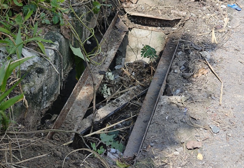 Theo người dân ở đây, hàng loạt nắp cống bằng sắt đã bị lấy mất trong thời gian qua. Để không gây nguy hiểm cho các phương tiện lưu thông trên đường, người dân đã dùng gỗ, ván, gạch che tạm, cảnh báo các phương tiện.