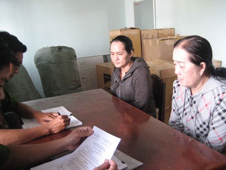Bi cao Sương (trái) và bị cáo Trần Thị Phương làm thủ tục đưa về trại giam |