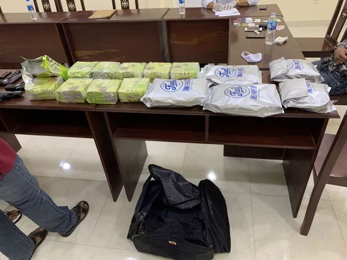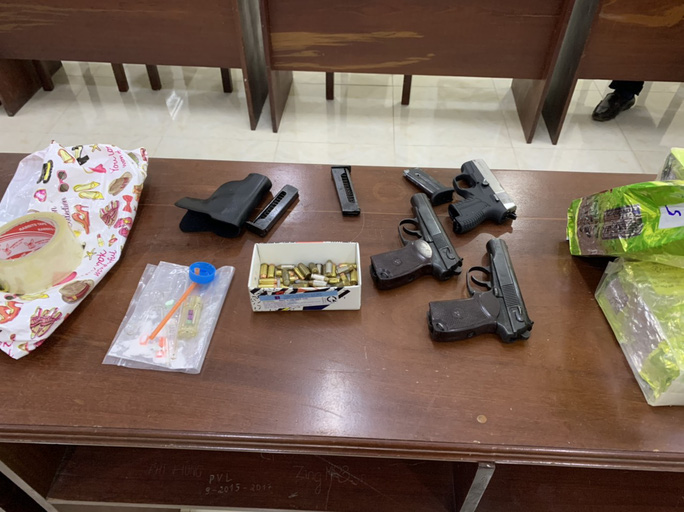 Lực lượng chức năng tìm thấy trong túi Khanh mang theo người có 17 kg ma túy các loại, 3 khẩu súng quân dụng, 40 viên đạn.