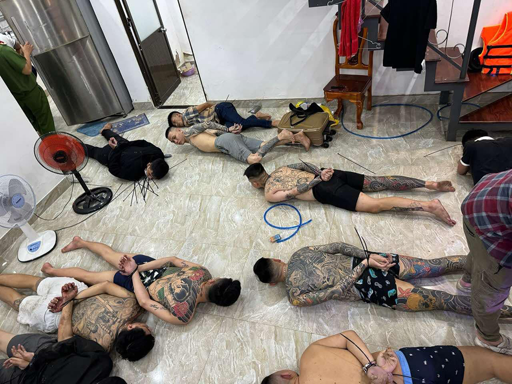 Chiều tối 4/10 vừa qua, các lực lượng phối hợp bất ngờ vây ráp và đột kích vào căn biệt thự nói trên. Tại đây, công an tạm giữ 16 đối tượng, trong đó có Ân cùng một số tang vật ma túy, 1 súng ngắn, 8 viên đạn cao su, 1 khẩu súng trường bắn đạn chì đã tháo rời các bộ phận.