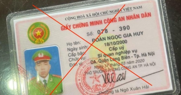 Sau khi kiểm tra, xác định người điều khiển phương tiện là Đoàn Ngọc Gia Huy, đối tượng này đã xuất trình Giấy chứng nhận đăng ký xe, Giấy phép lái xe; giấy Chứng minh Công an nhân dân số 078-390 mang tên Đoàn Ngọc Gia Huy, cấp bậc: cấp Úy, do Thượng tá Ngô Xuân Hải, Công an quận Long Biên, thành phố Hà Nội cấp ngày 17/3/2020; đồng thời cho biết trước đây làm trong lực lượng Công an nhân dân.