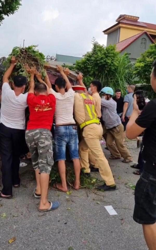 Công an huyện Lương Tài đã cùng với người dân xung quanh nâng chiếc xe bị nạn để đưa những người bên trong ra ngoài đi cấp cứu.