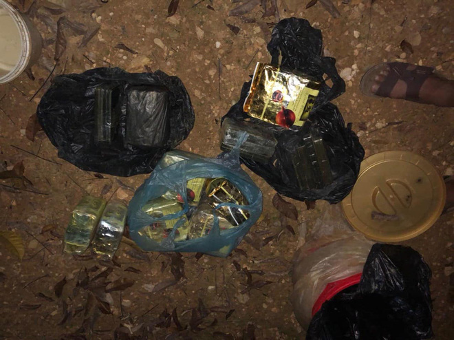 "Khi ra vườn, trời lúc này mưa nên một số điểm đất bị lún xuống. Mọi người đào lên thì phát hiện đối tượng giấu lượng lớn ma túy trong các thùng sơn chôn dưới đất phía dưới gốc cây", cán bộ Công an TP. Vinh nói.