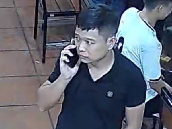 Trước khi lấy trộm 2 balo, nghi can đi xung quanh các bàn trong quán, vờ nghe điện thoại. Anh ta liên tục nhòm ngó, quan sát các bàn ăn.