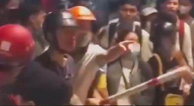 Theo nhân chứng thuật lại, nhóm người nêu trên cầm gậy và dùng chân, tay đánh nhóm bảo vệ. Còn những người mặc đồng phục trắng cũng phản kháng.