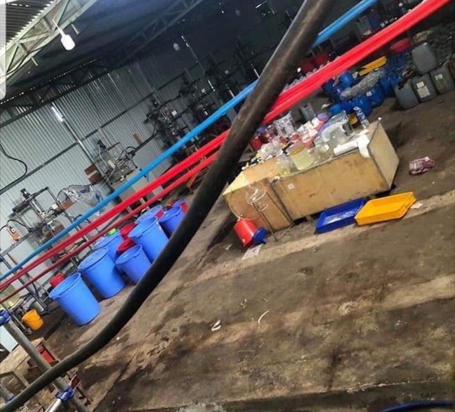Sau nhiều giờ kiểm đếm, lực lượng công an đã ghi nhận có tổng cộng 52 thùng phuy loại 250 lít và hàng trăm can nhựa loại 20 lít và nhiều xô nhựa đựng dung dịch lỏng, một màu trắng là tiền chất để sản xuất ma tuý đá. Đặc biệt, có trên 20 máy trộn hình cầu dùng để sản xuất ma tuý đá.