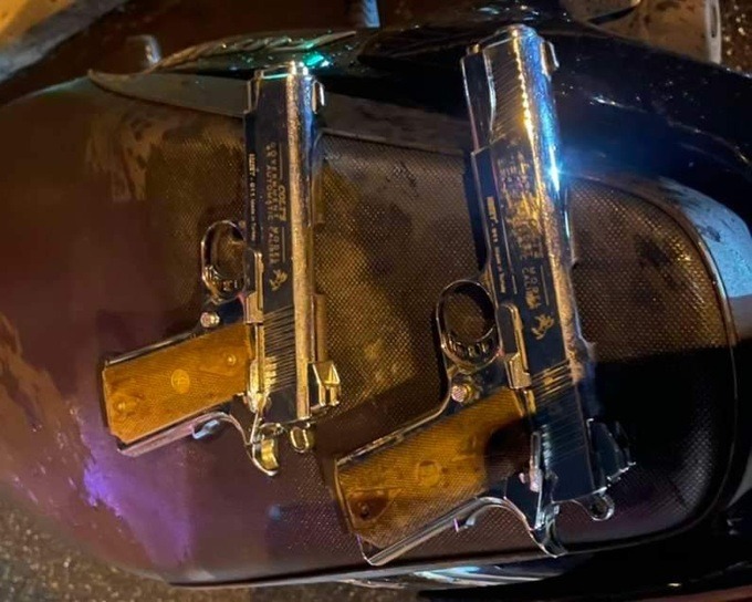 Tại hiện trường, lực lượng làm nhiệm vụ tạm giữ 4 khẩu súng, 25 viên đạn, 1 quả nổ tự chế, 1 bình xịt hơi cay, 1 áo chống đạn, 5 dao bấm, 2 bịch ni-lon chứa chất bột màu trắng nghi là ma túy, 11 điện thoại di động, 6 xe ô tô cùng một số tang vật liên quan.