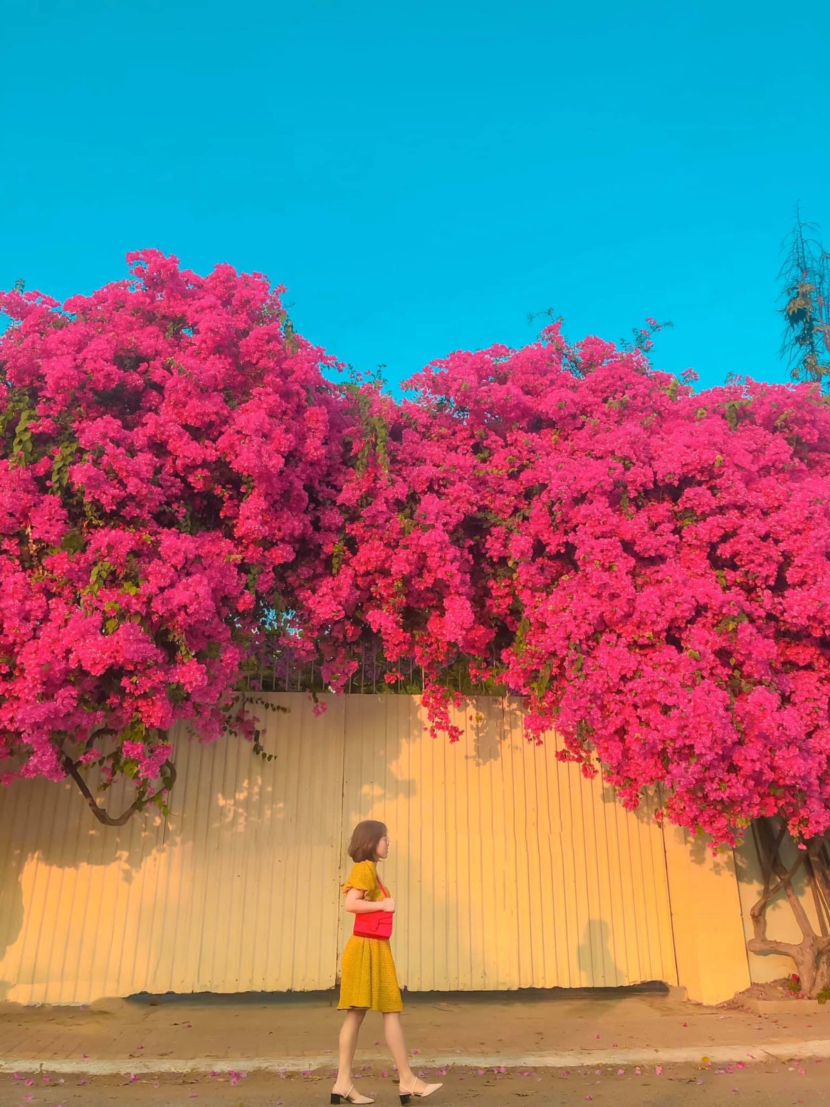 Thế nhưng, vào ngày 28/3, cư dân mạng và những người yêu du lịch không khỏi xôn xao trước hình ảnh giàn hoa giấy này đã bị kẻ gian phá hoại, cưa trộm lấy đi một đoạn thân.