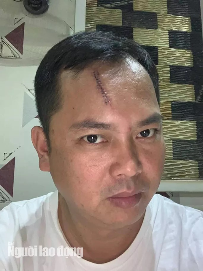 Ông Hải bảo rằng cũng như trong đơn tố cáo đã trình bày và trong bản ghi lời khai tại cơ quan điều tra, ông đã khai rất rõ sự việc. Cụ thể, vào ngày 12-6, ông bị các ông Phạm Văn Hiền, Đinh Tú Anh và Nguyễn Quang Trường tự ý mở cửa xông vào phòng ông đang ngồi đóng và chốt cửa lại rồi cầm ghế đánh vào đầu ông. Cú đánh mạnh khiến ông bị rách trán, phải đi khâu vết thương 13 mũi và hiện đang để lại vệt sẹo dài 7cm trên trán.