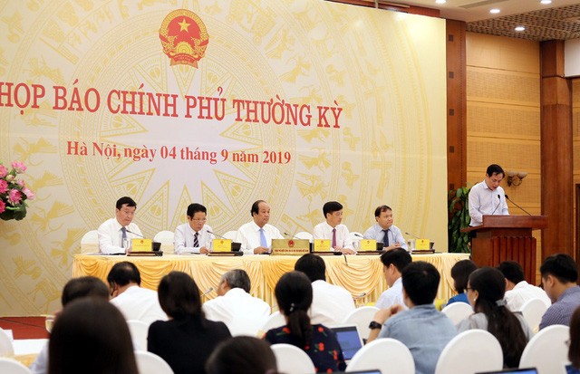 Chiều 4/9, Bộ trưởng Mai Tiến Dũng - Chủ nhiệm Văn phòng Chính phủ, Người phát ngôn của Chính phủ chủ trì buổi họp báo Chính phủ thường kỳ tháng 8/2019.